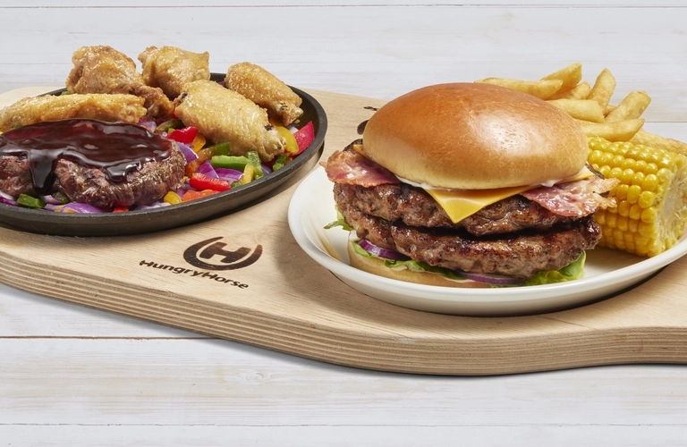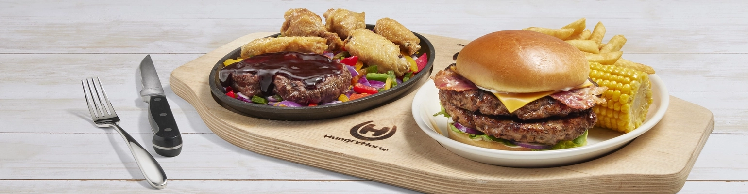 From juicy steaks and hearty Sunday roasts to sharing platters and classic favourites, our menu is packed with delicious options for breakfast, lunch, and dinner. Families will love our huge kids’ selection, plus tasty vegetarian and vegan dishes for everyone to enjoy. With wallet-friendly offers every day and unbeatable Super Specials for the really hungry, there’s a deal to suit all appetites. Don’t miss our iconic dishes, like the gravity-defying Quadzilla burger and the indulgent Horseshoe Homer doughnut dessert—flavours that keep guests coming back for more.
