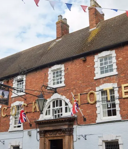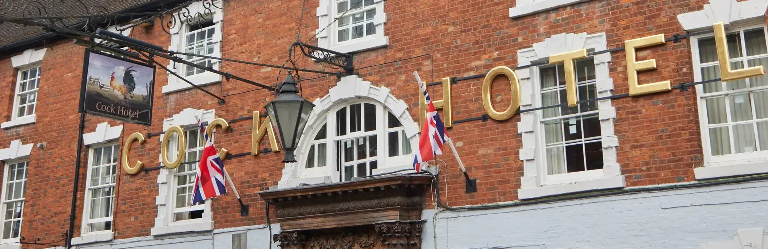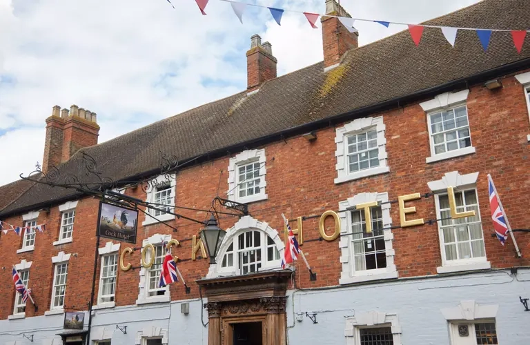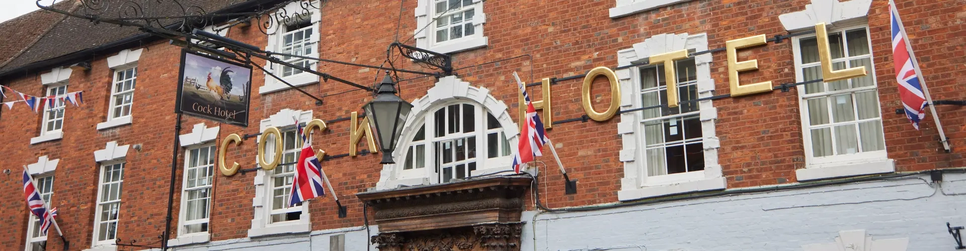 Book your big dayBuilt in the 15th century as a coaching inn, where guests could stay before changing coaches, the Cock is a hotel rich in history. It stands on the famous Roman road, Watling Street, across from The Bull Hotel, and is the source of the phrase 'a cock-and-bull story' thanks to the gossip and tales travellers would tell as they drank in the two inns. It's also a fantastic venue to host special occasions such as weddings, family parties and anniversary meals.