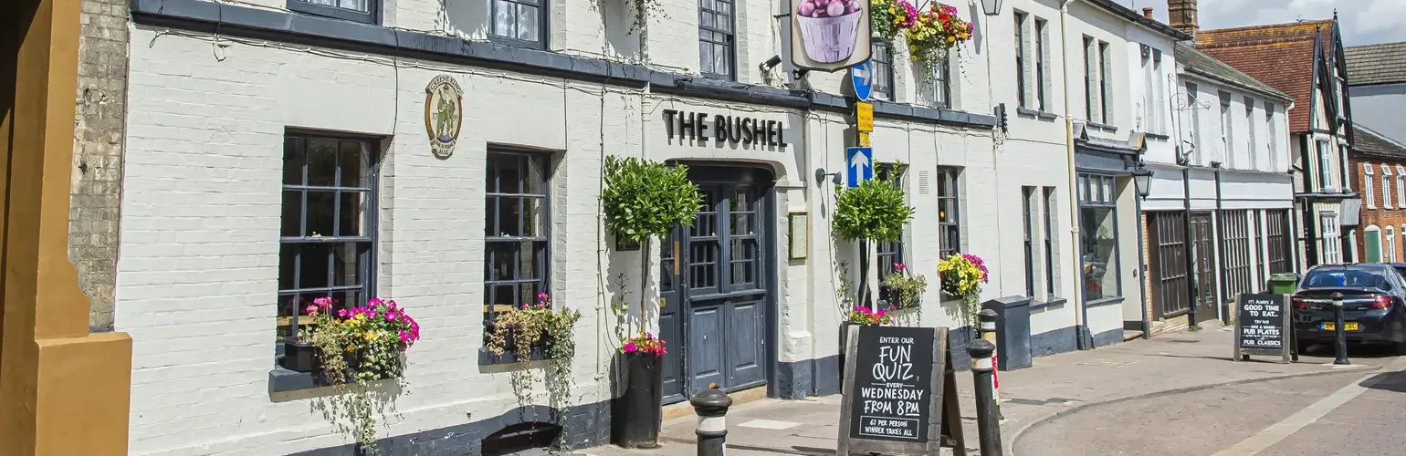The Bushel is nestled right in the heart of beautiful Bury St Edmunds, a historic market and cathedral town with bags of charm and locations to enjoy. It's a short walk from The Apex theatre, Bury St Edmunds Abbey and St Edmundsbury Cathedral, as well as from a host of local shops, cafes and other historic sites. A visit to our Greene King Beer Cafe and the brewery tour is particularly recommended!